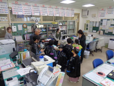 今日は図工で作った衣装を着て、職員室にきてくれました。