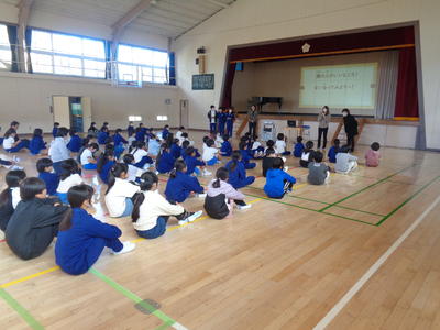 ALTや外国語活動支援員、担任の先生と一緒に、英語によるペープサート劇を楽しみました。