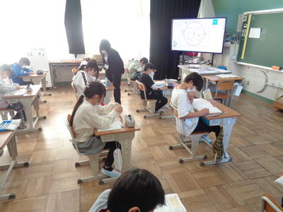 5年生の算数では、正多角形と円の学習をしています。 11月から本校で教育実習をしている大学生が、指導教諭の指導の下、この単元の指導を行っています。 今日は、群馬大学共同教育学部の澤田准教授がご来校になり、教育実習生の研究授業が行われました。