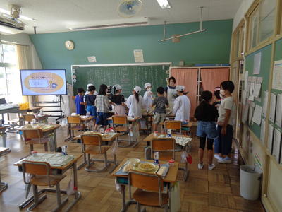 3年生の教室には、給食センターの栄養士さんがいらっしゃって、