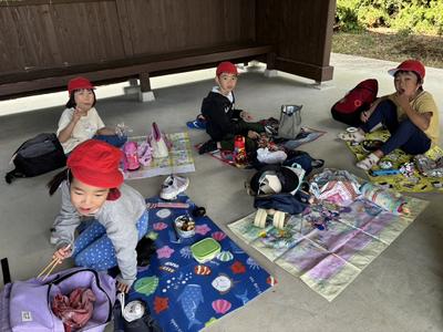 広い公園でおいしいお弁当を食べ、